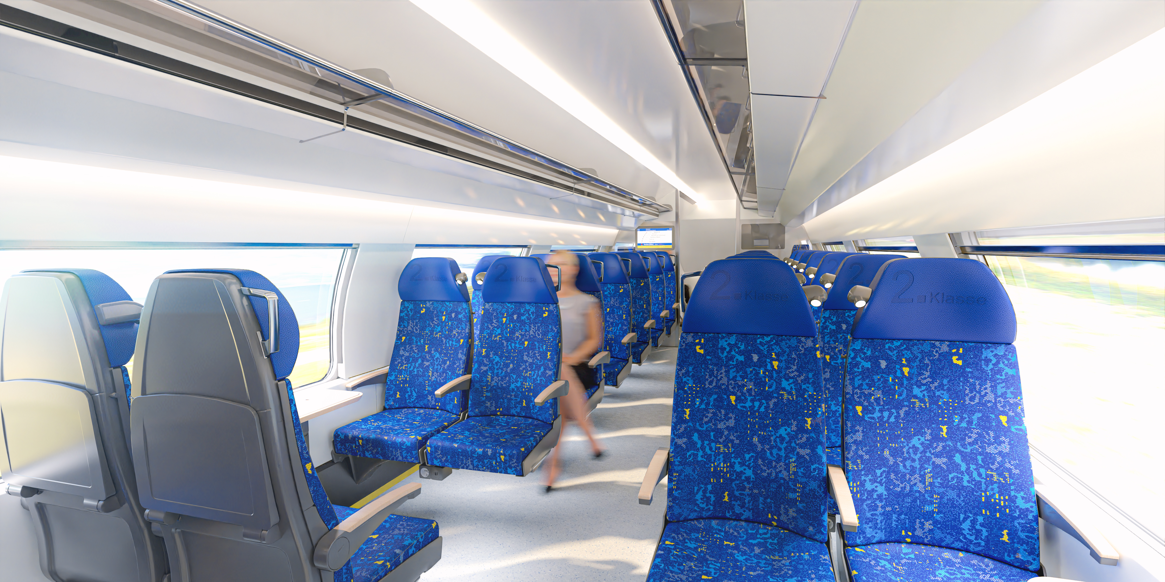 Innenansicht des Fahrzeuges im oberen Stock. Quelle: Alstom